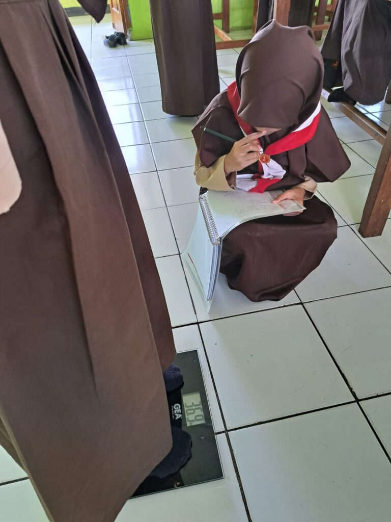 3. Tiap kelompok melakukan pengukuran berat badan dan lingkar pinggang
